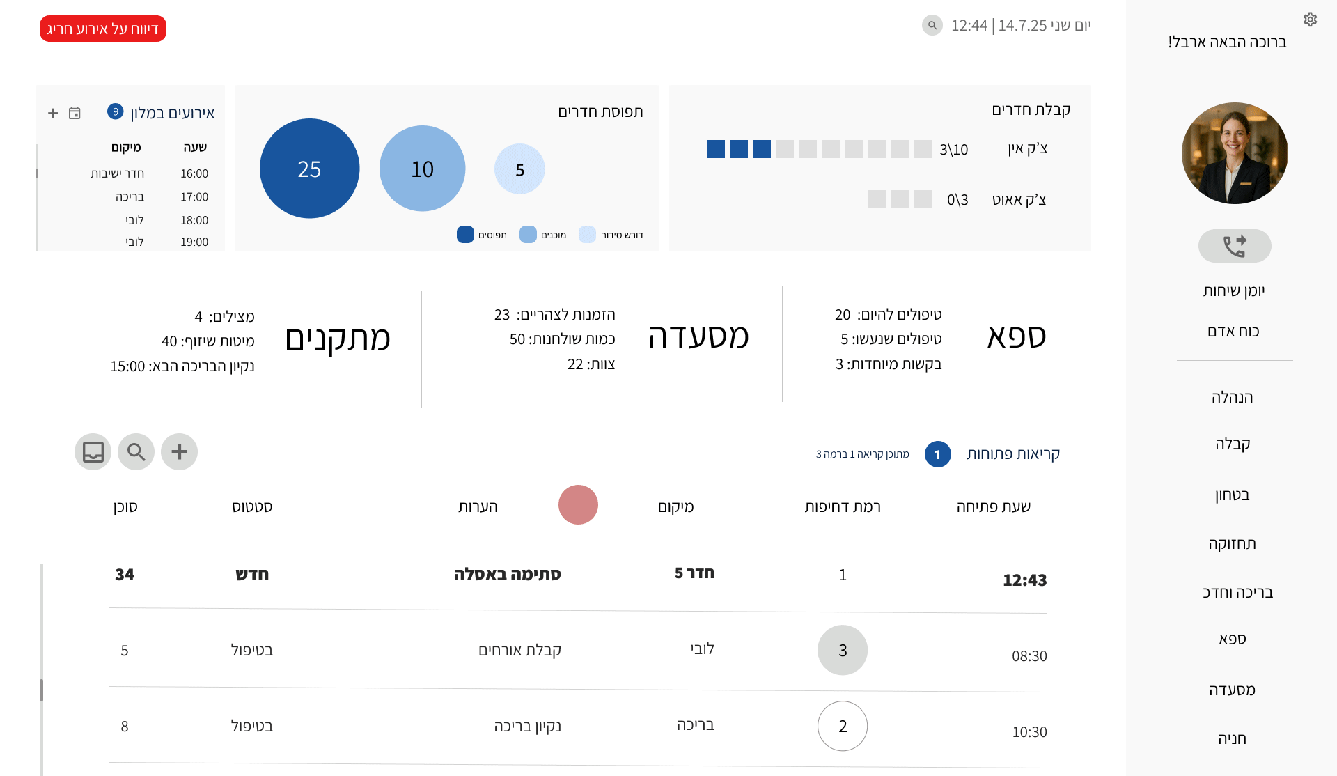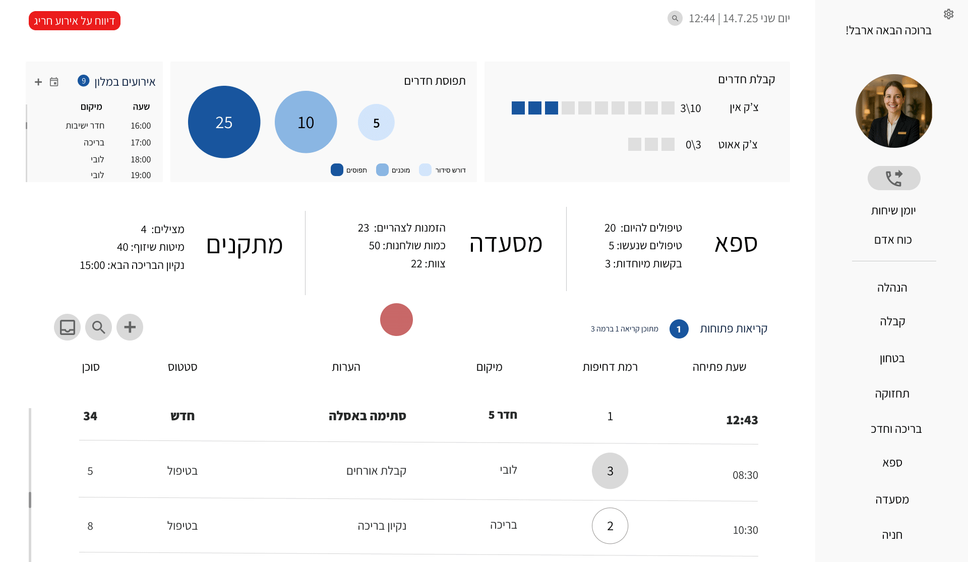 This complex system project delivers a comprehensive, real-time Dashboard tailored for the Shift Manager at the "Neve Galil Hotel."