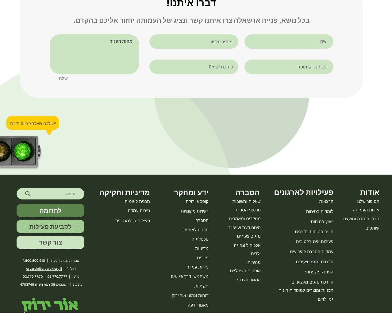 Or Yarok is a private non-profit organization, founded in 1997 by Israel Prize laureate Avi Naor. The organization is dedicated to reducing road accidents and promoting community involvement in road safety.